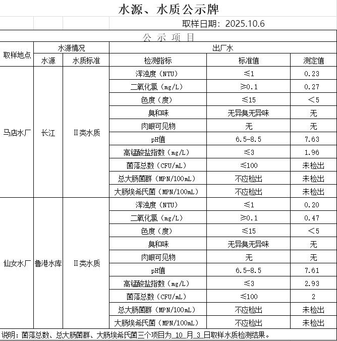 2025年10月6日水质公告