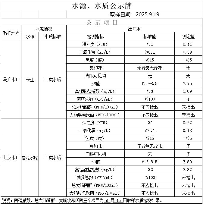 2025年9月19日水质公告