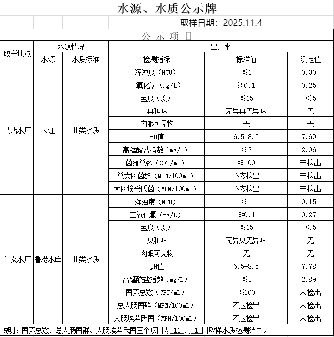 2025年11月4日水质公告