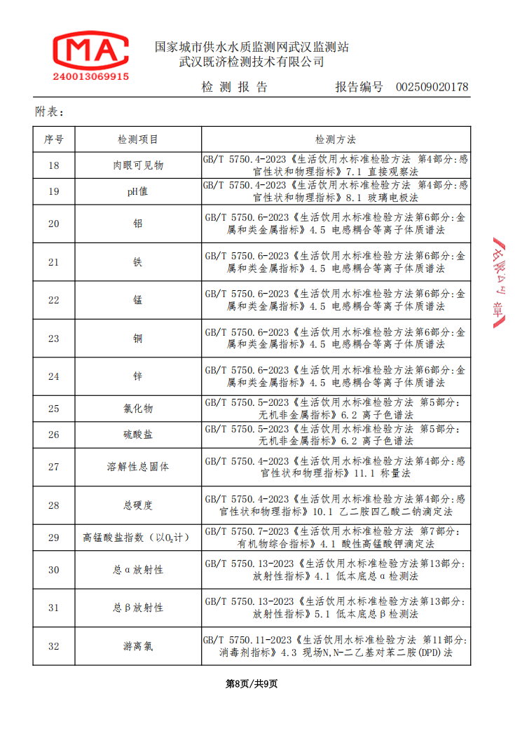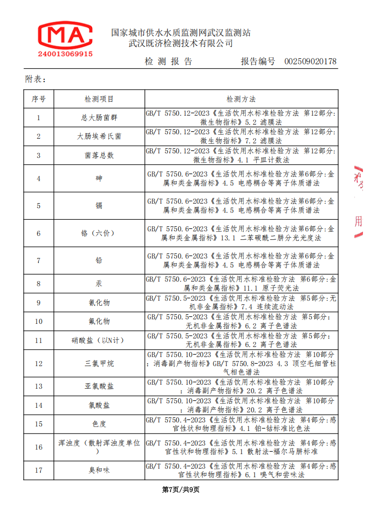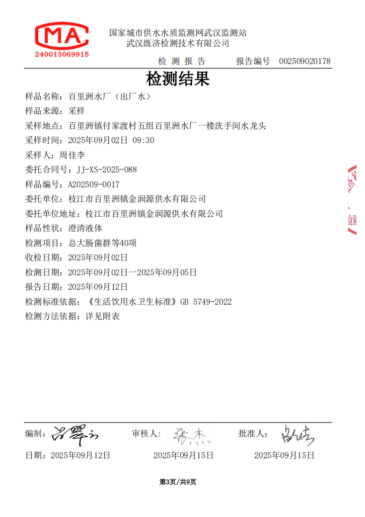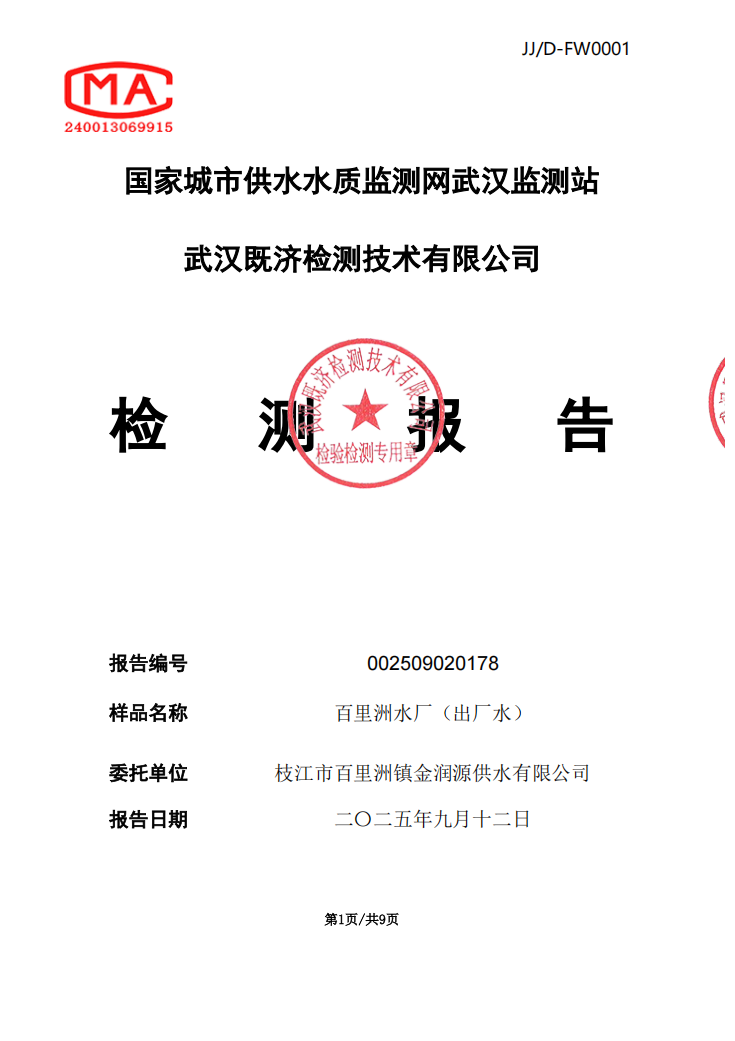 2025年9月百里洲水厂管网末梢水水质检测公告